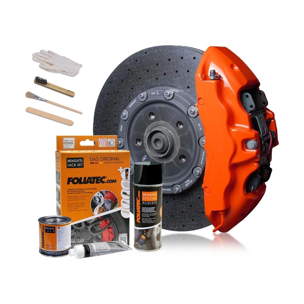 Beinhaltet : Bremsen Spezialreiniger, 400 ml + 2-Komponenten Lacksystem (125 ml Lack + 50 ml Härter), 1 Stahlbürste, 1 Feinhaarpinsel, 1 Spatel 2 Einweg-Schutzhandschuhe .