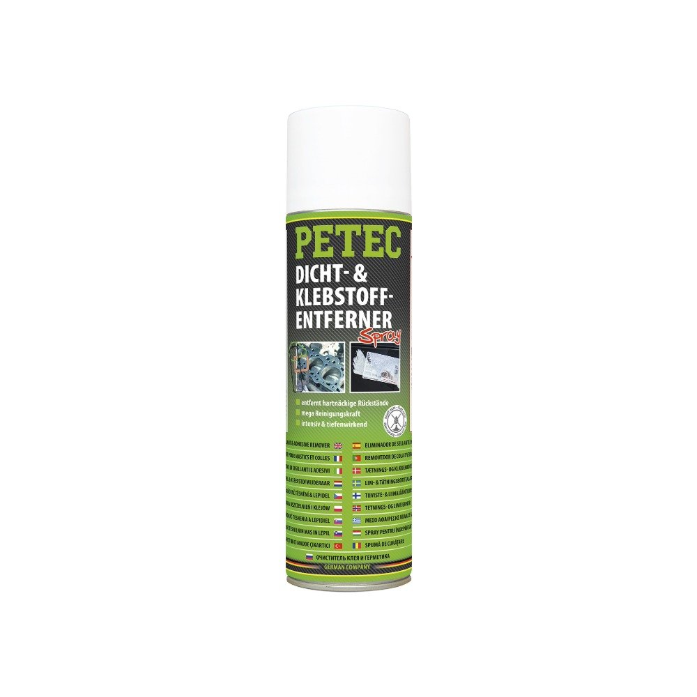 PETEC Dicht- & Klebstoffentferner löst und entfernt hartnäckige Dicht- und Klebstoffreste sowie Farben und Lacke. Auch zum Entfernen von Dichtungsresten (Papier, Kork, Gummi und Silikon) an Flächen- und Flanschverbindungen wie z. B. Ventildeckel, Zylinderkopf, Ölwanne, Auspuffkrümmer, Stirndeckel, Wasserpumpe, Thermostat, Getriebe und sonstigen Teilen geeignet.