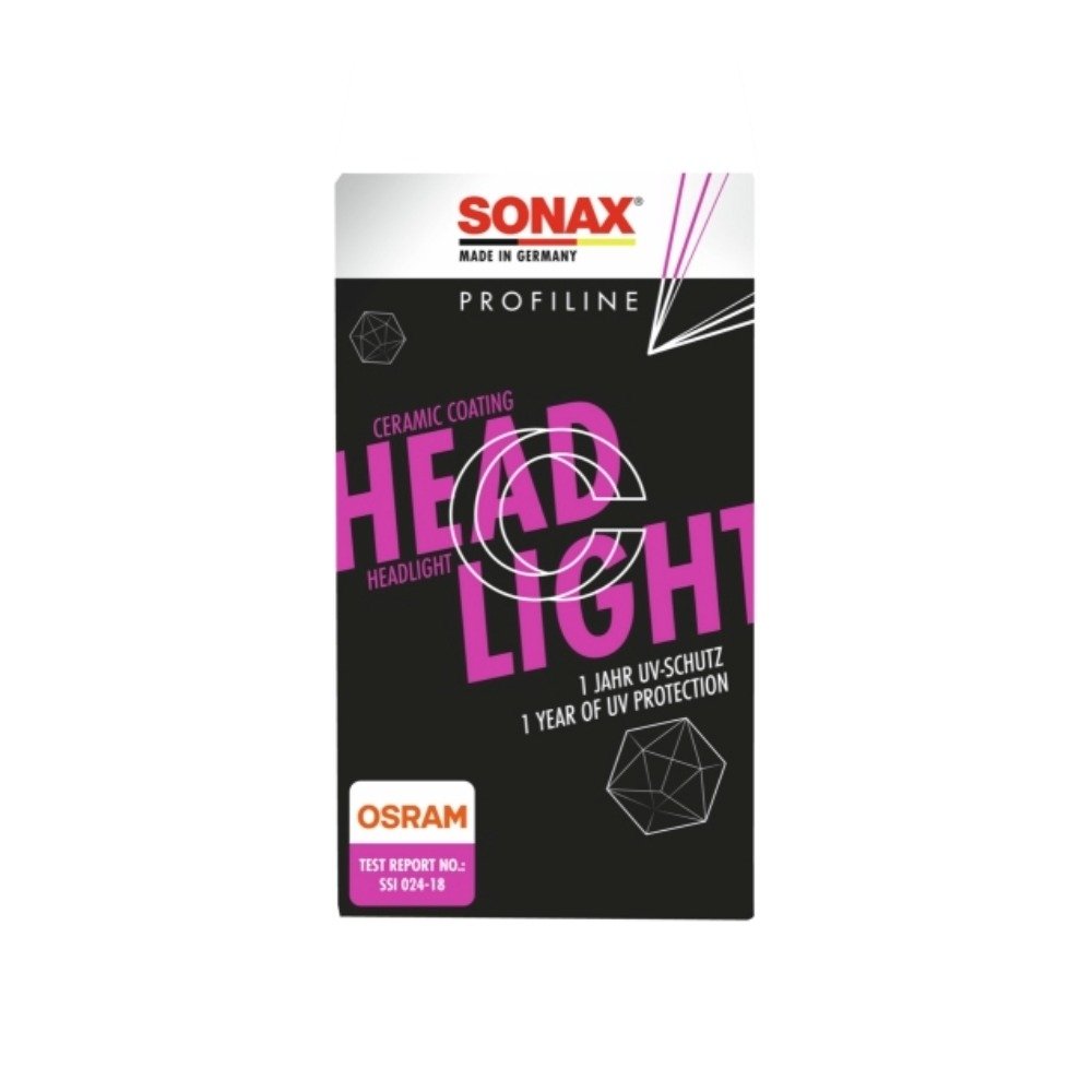 SONAX PROFILINE Headlight Coating. Keramische Langzeitversiegelung für Kunststoffscheinwerfer und Rückleuchten an Kraftfahrzeugen. Die gegenüber Umwelteinflüssen und Fahrzeugwäschen resistente Schutzschicht aus Siliziumcarbon-Basis verhindert das Ausbleichen des Scheinwerfers durch das in der Sonne enthaltene UV-Licht. Haltbarkeit bis zu einem Jahr. Wirkung bestätigt von Osram.