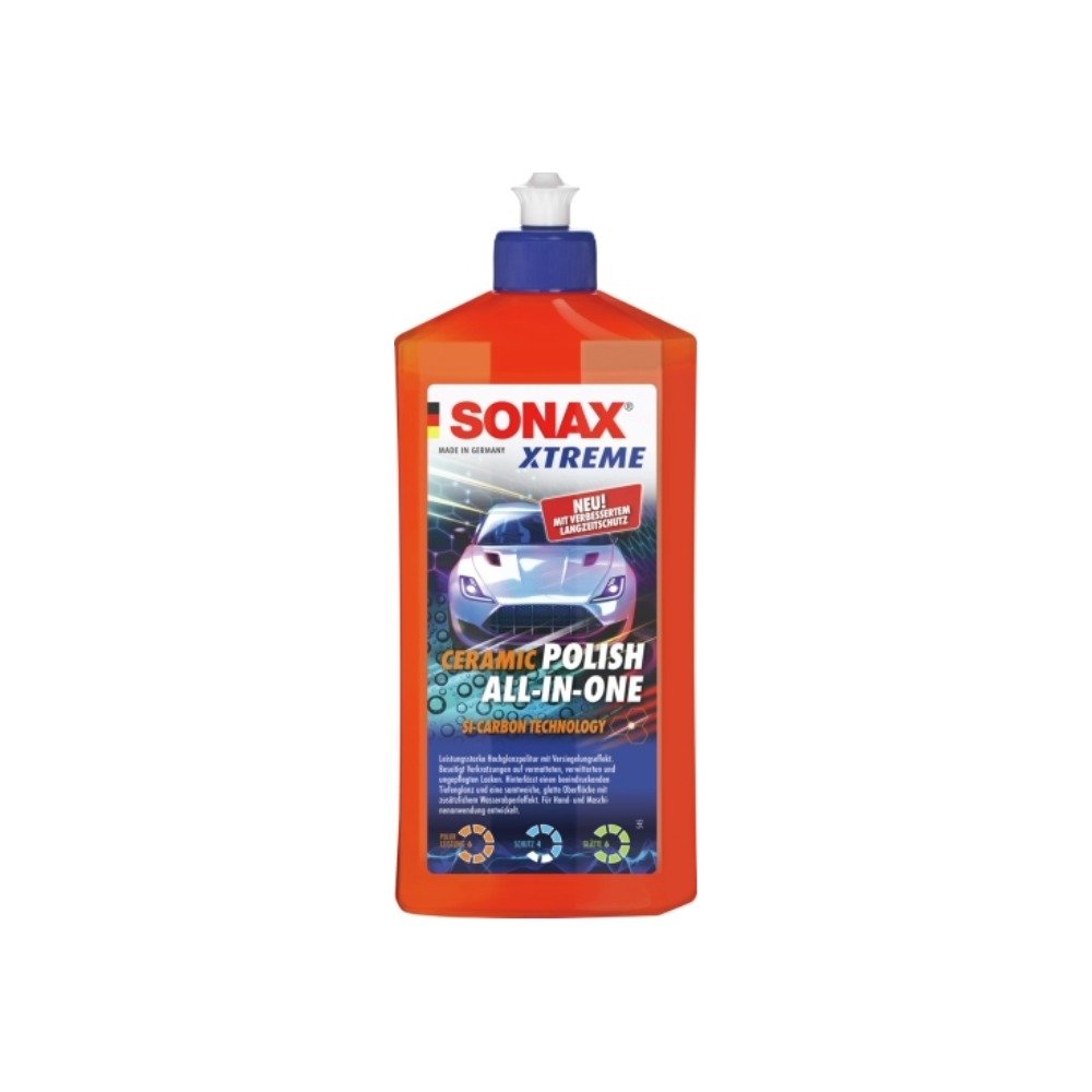 Die neuartige XTREME Ceramic Polish All-in-One poliert, glättet und versiegelt den Lack in nur einem Arbeitsschritt. Lästige Verkratzungen und Vermattungen werden entfernt. Gleichzeitig wird der Lack mit einer schmutzabweisenden Schicht überzogen. Die Si-Carbon Technology sorgt für eine samtweiche Oberfläche und lässt den Lack in dauerhaftem und spiegelndem Glanz erstrahlen. Schützt bis zu 2 Monate und hinterlässt einen Wasserabperleffekt. Für Hand- und Maschinenanwendung entwickelt.